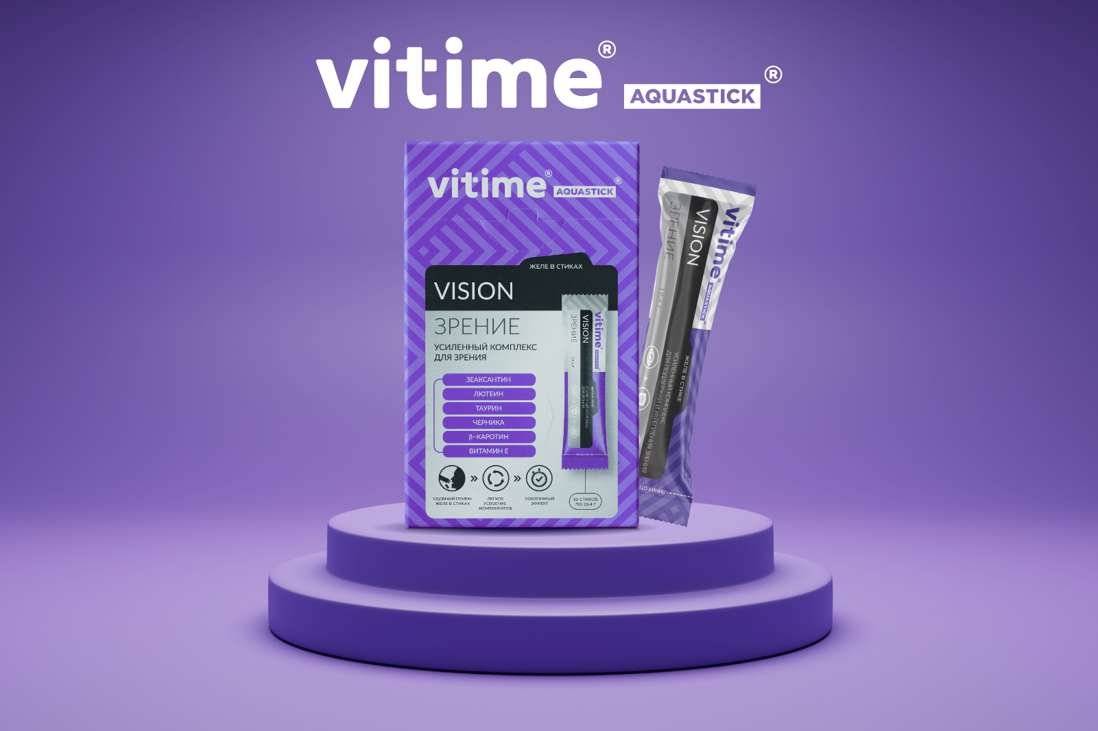 Сделать профилактику проблем со зрением более эффективной поможет прием VITime® Aquastick® Vision. Это витаминный комплекс с черникой, усиленный высокими дозами лютеина и зеаксантина для поддержки и укрепления зрения. VITime® Aquastick® Vision – это не привычные мультивитамины для глаз в форме таблеток или капсул, а желейные батончики в стиках. Их удобно брать с собой, жидкая форма обеспечивает быстрое начало действия, а вкус черной смородины делает заботу о здоровье глаз не только полезной, но и приятной.