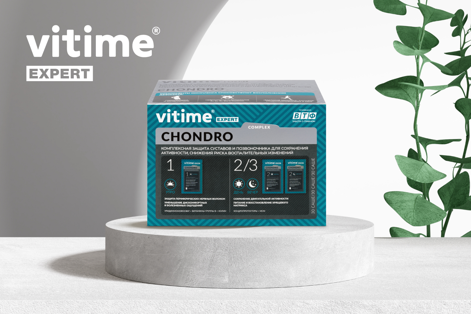 Попробуйте VITime® Expert Chondro, ведь боль и дискомфорт в суставах и позвоночнике всегда требуют многостороннего подхода.