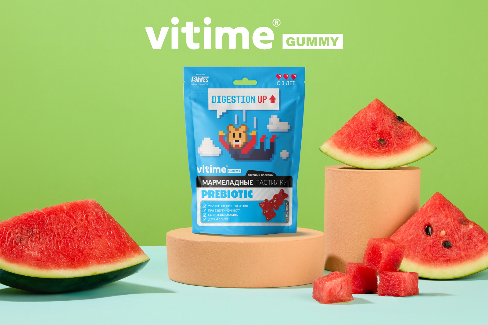 А для поддержания иммунитета, пищеварения и общего развития обратите внимание на линейку VITime® для детей – полезные, безопасные и вкусные продукты в формате жевательных таблеток и мармеладных пастилок. Они превращают заботу о здоровье в удовольствие!