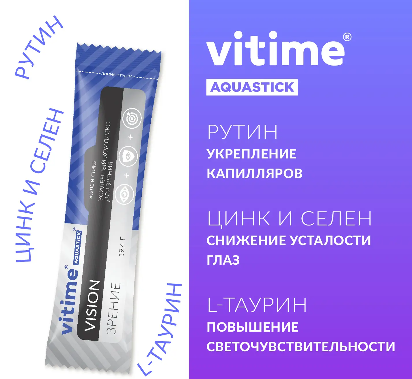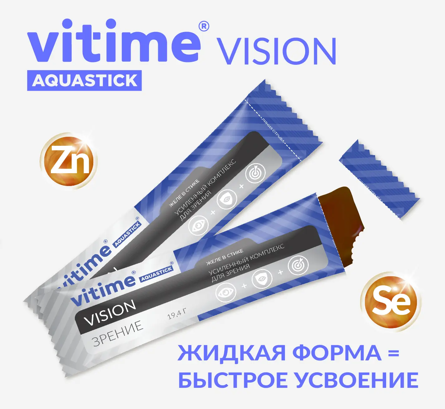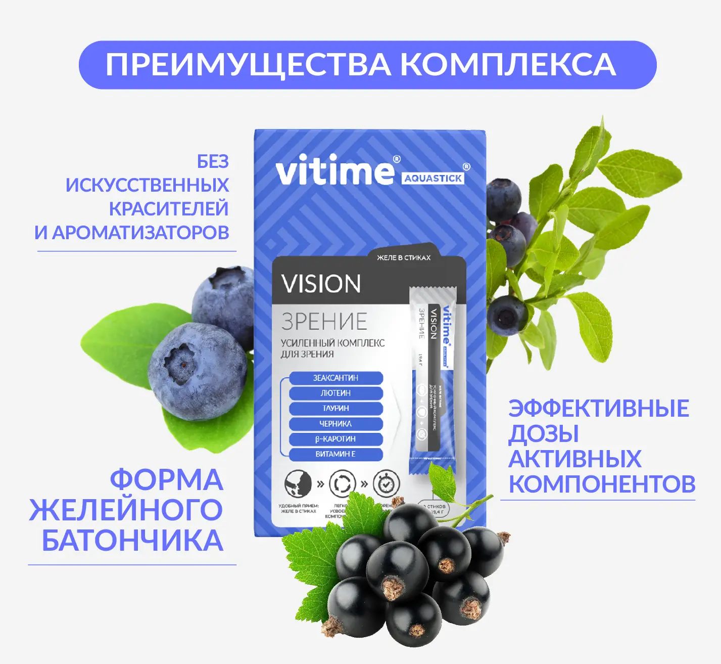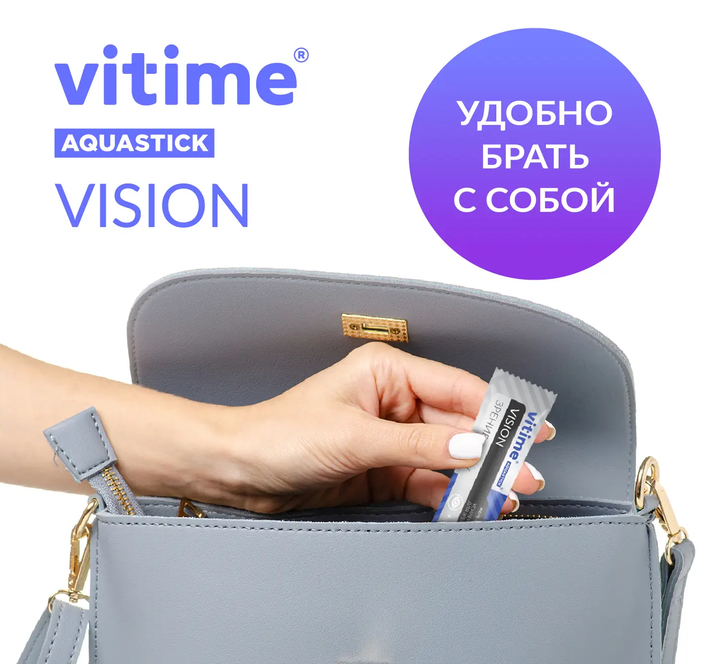 VITime Aquastick Vision (Витайм Аквастик Вижн) можно принимать с 18 лет. Для детей рекомендуем VITime Gummy Зрение, детские витамины для зрения с лютеином и черникой.