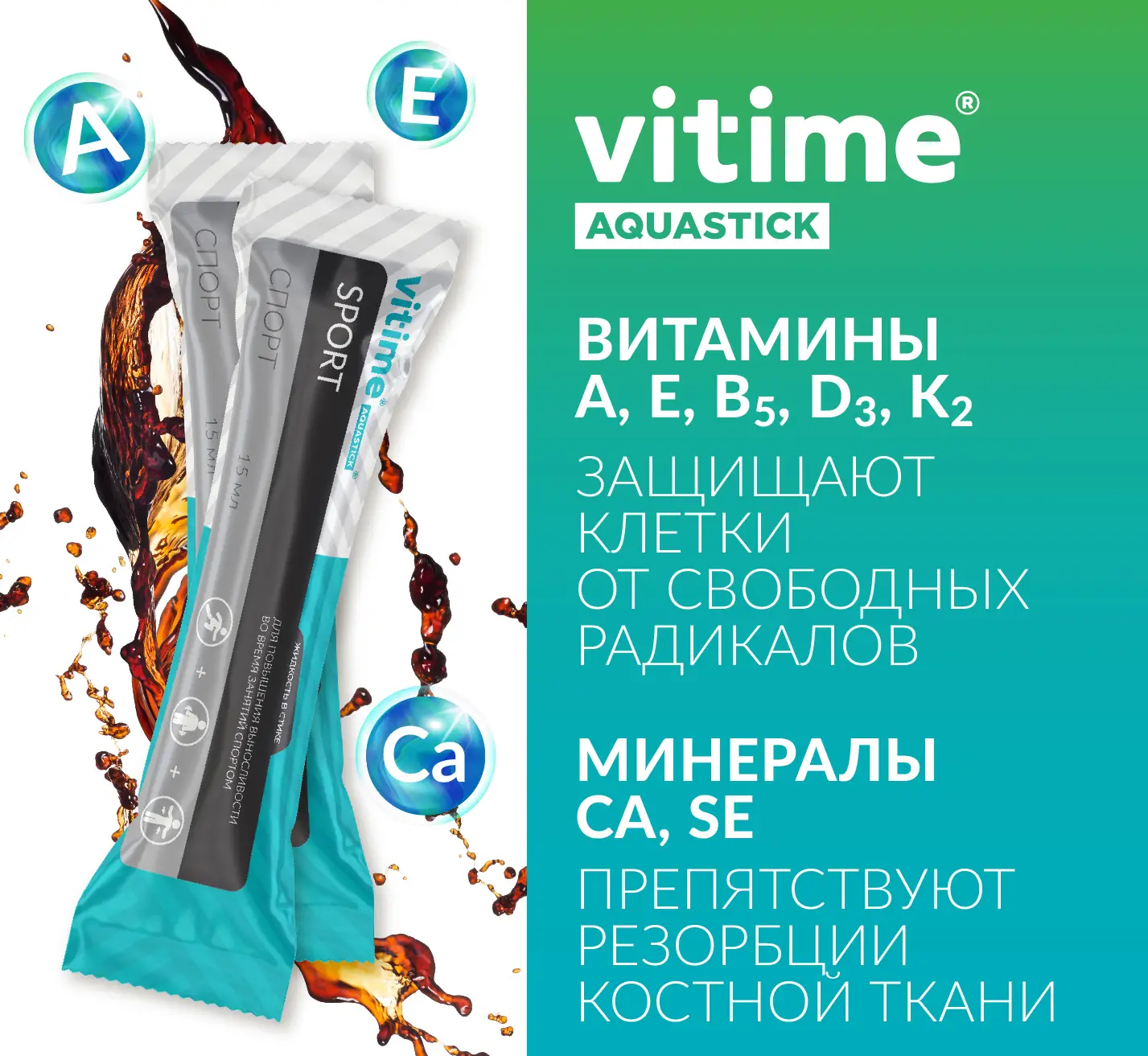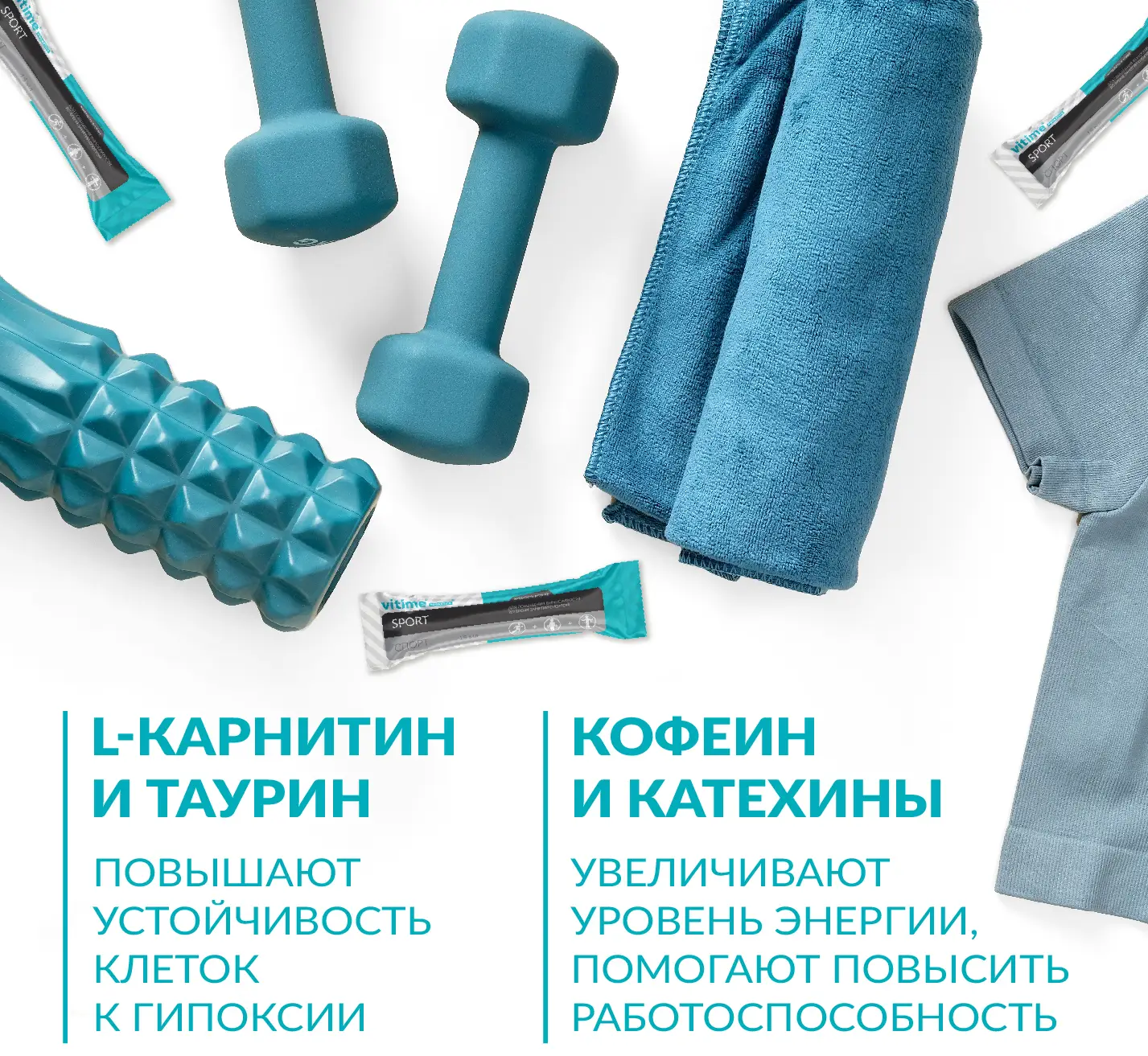 Комплекс VITime® Aquastick® Sport подходит для приема при активных физических нагрузках, помогая повысить уровень энергии и выносливости. Входящие в состав компоненты обеспечивают многофакторную поддержку организму, способствуя лучшей переносимости физических нагрузок как в спорте, так и в повседневной жизни.