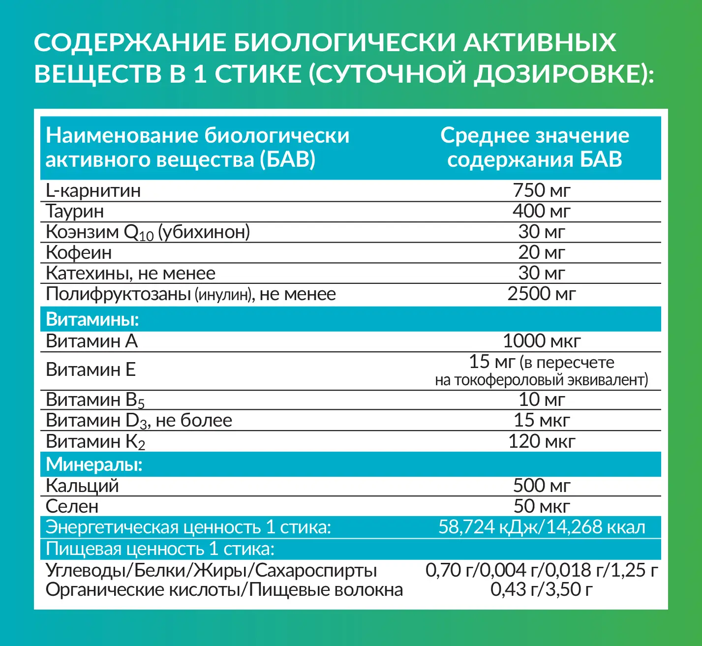 - Энергия, помощь в снижении веса и поддержка организма при занятиях спортом в одном стике.