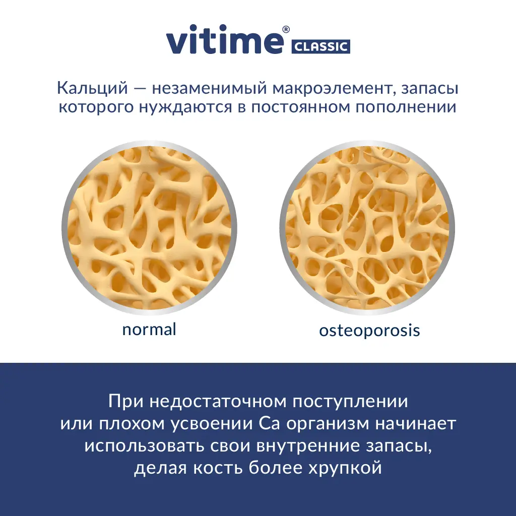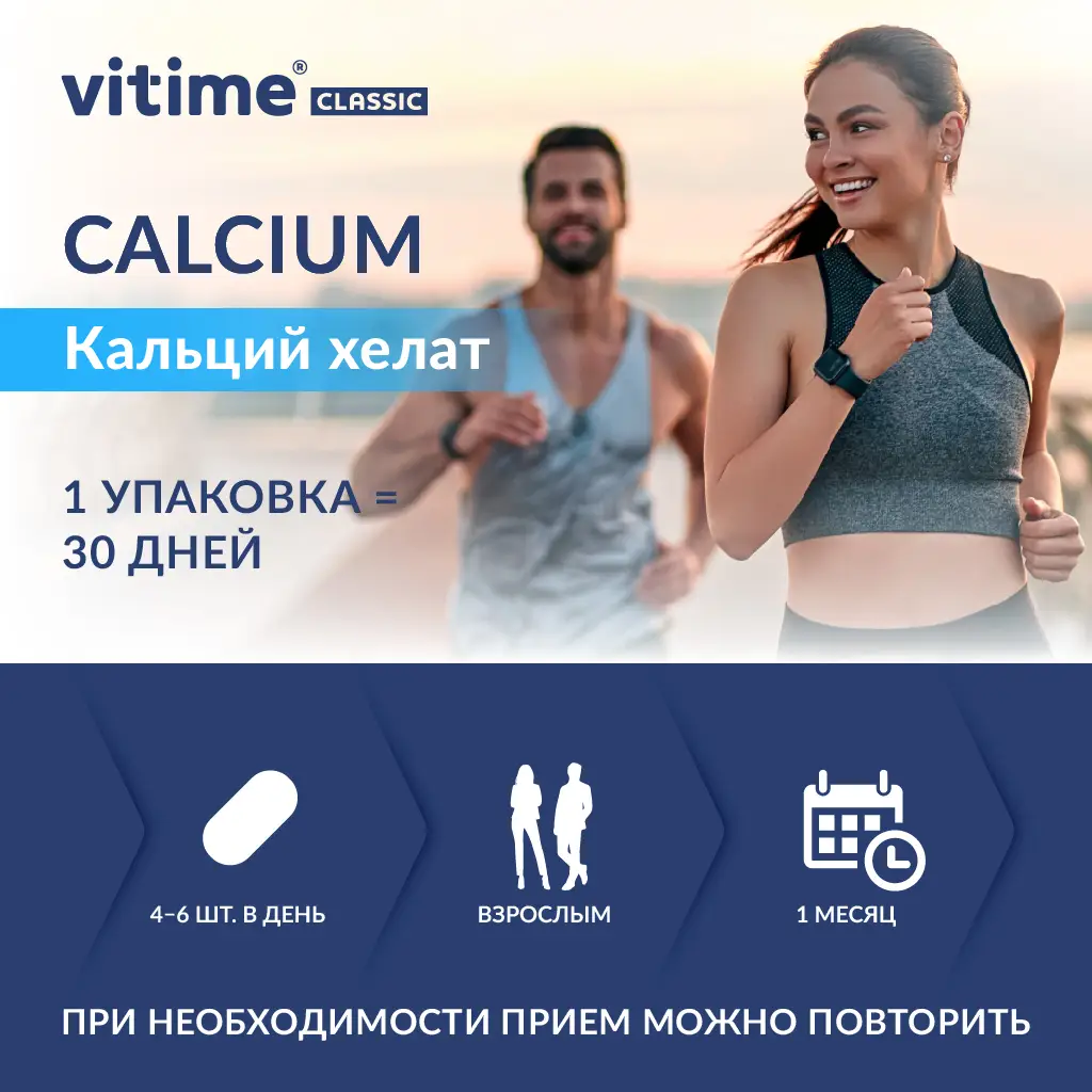 1000 мг кальция содержится в 6 таблетках VITime Кальций Хелат.