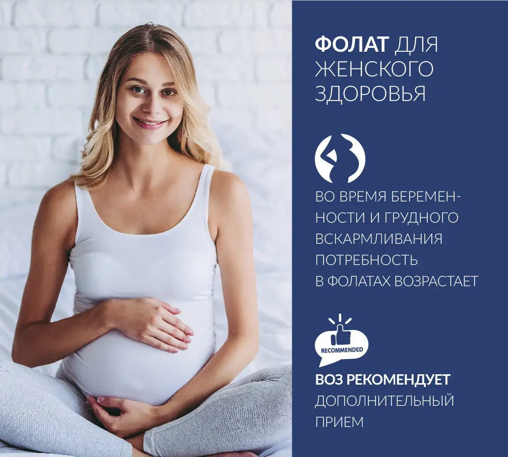 Источник биодоступной фолиевой кислоты в форме L-метилфолата. Необходим для кроветворения, поддержки сердца, печени и мозга. Особенно важен во время беременности