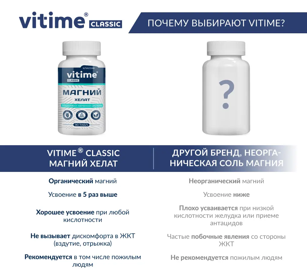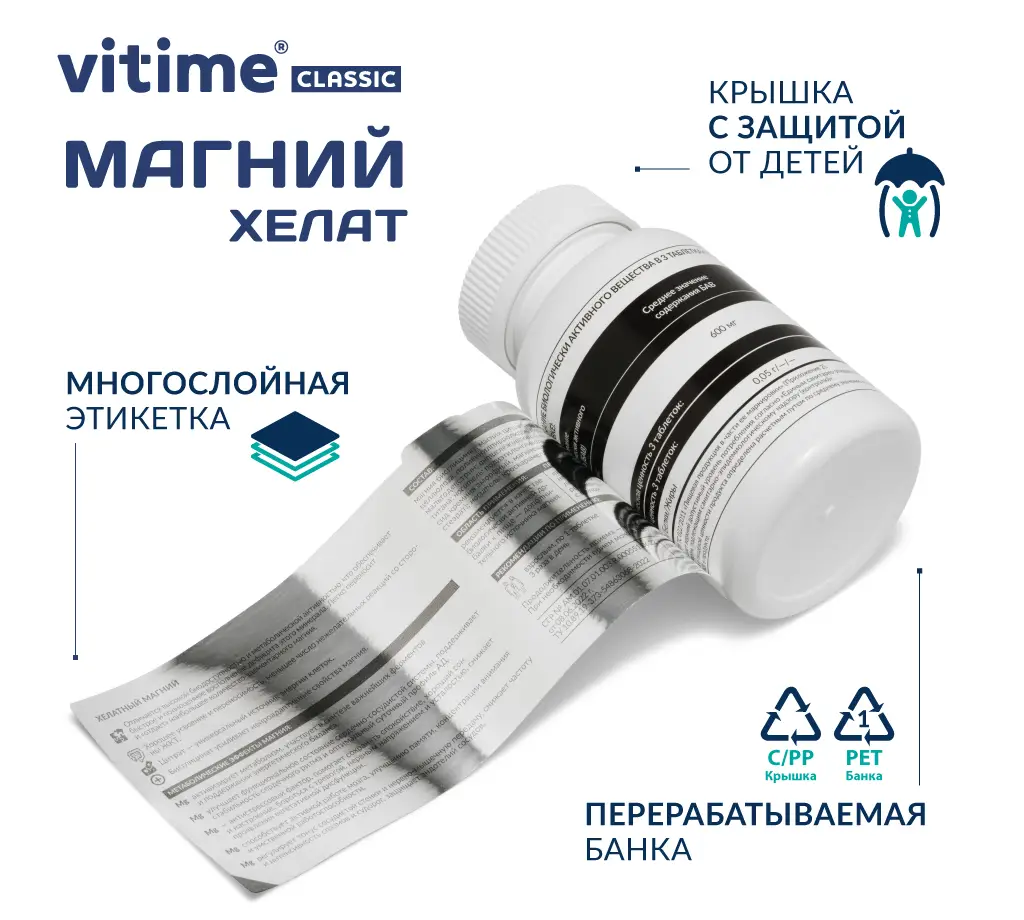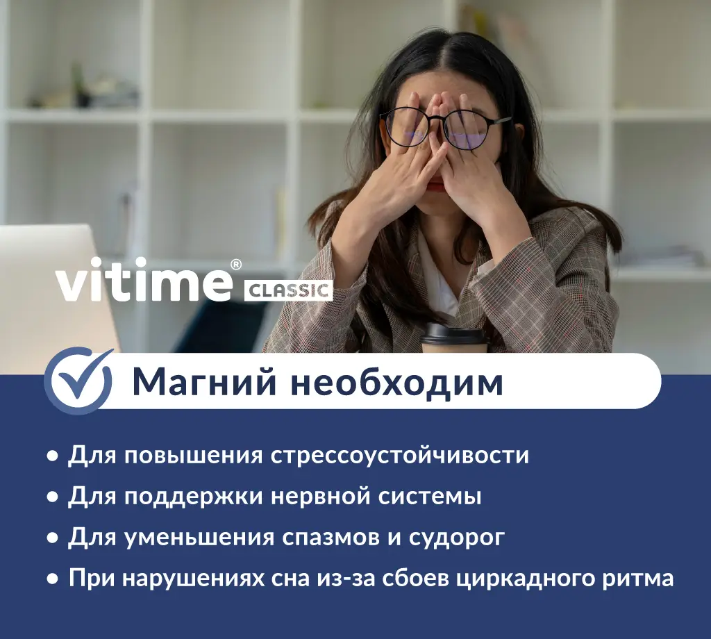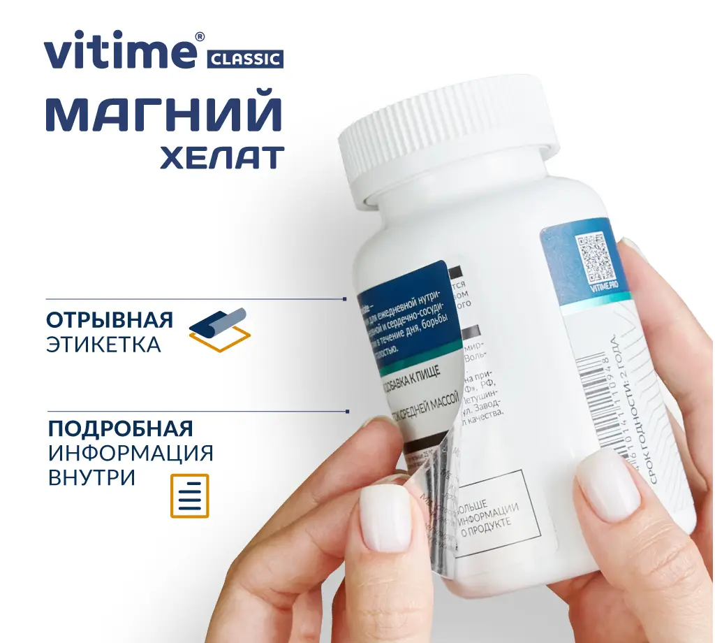 VITime Classic Magnesium Chelate рекомендован к приему с 18 лет.