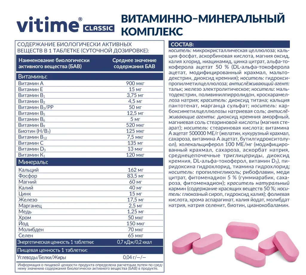 В какой форме выпускается витаминно-минеральный комплекс VITime Classic?