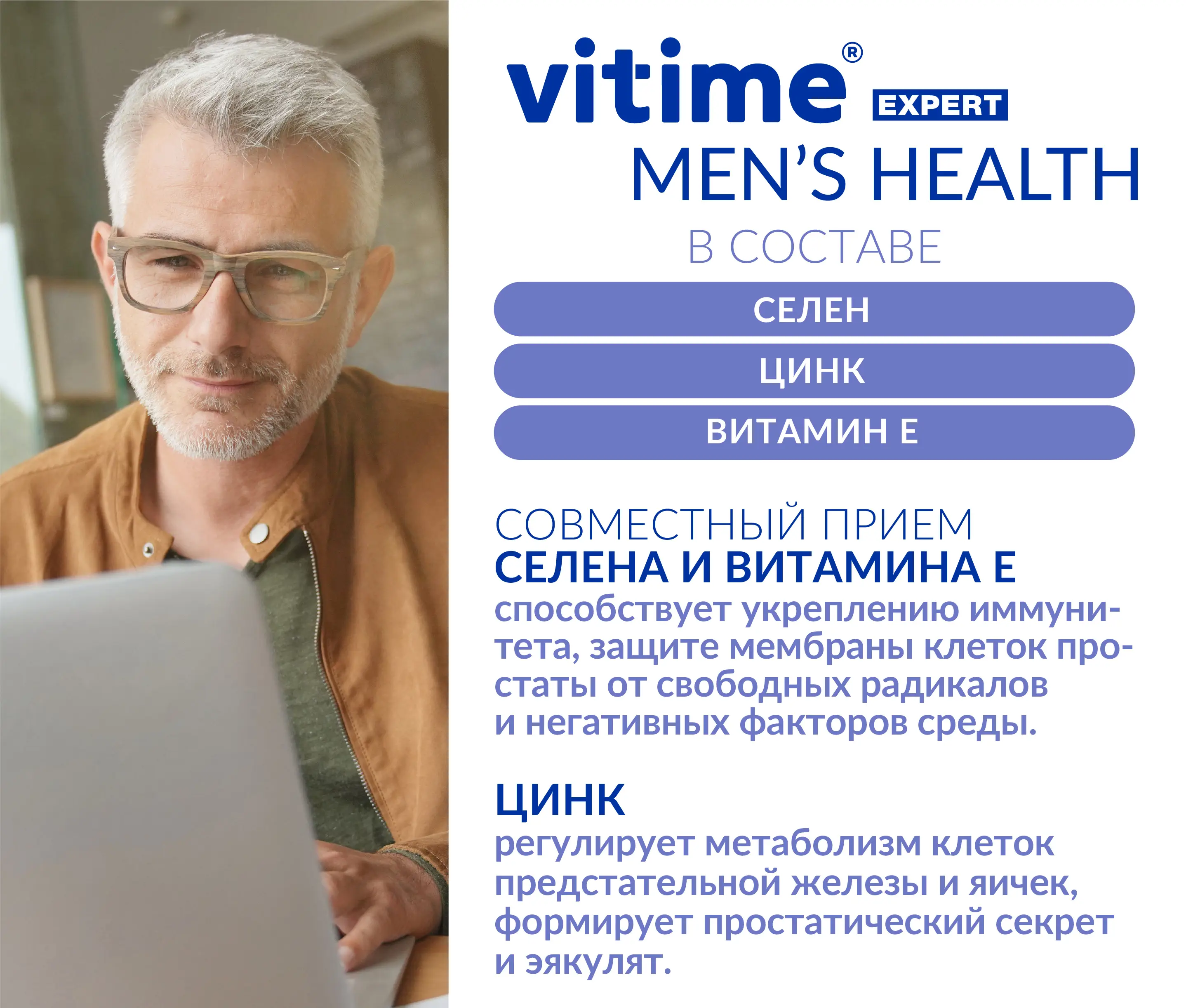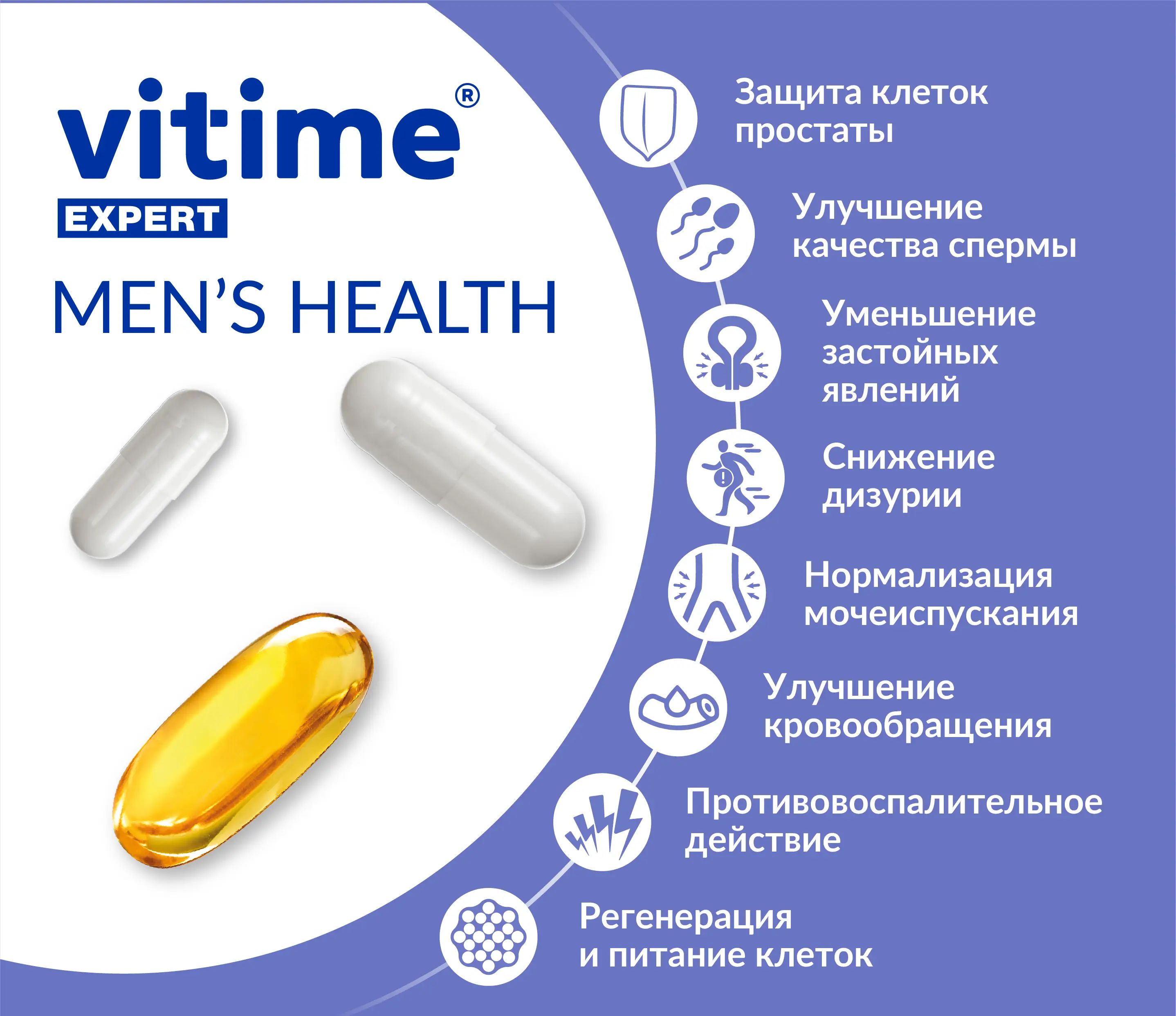 При длительном курсовом приеме VITime Expert Men’s Health положительно влияет на качество спермы. Для определения длительности курса рекомендуем обратиться к специалисту.