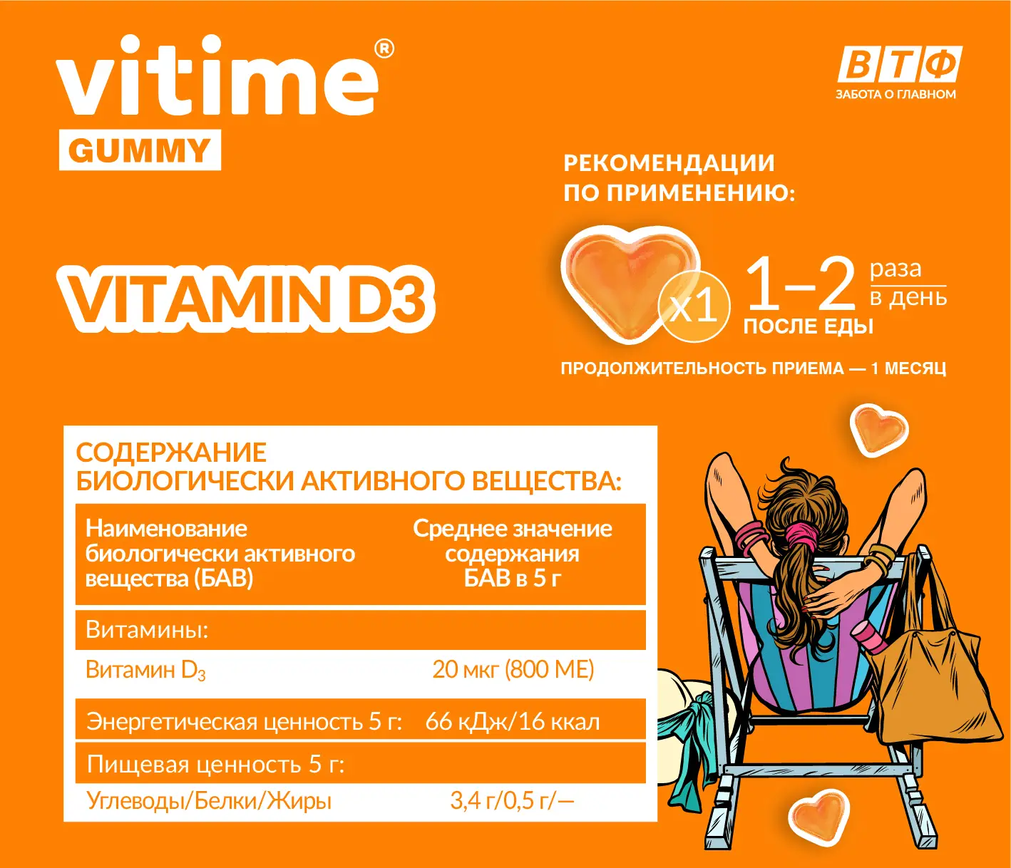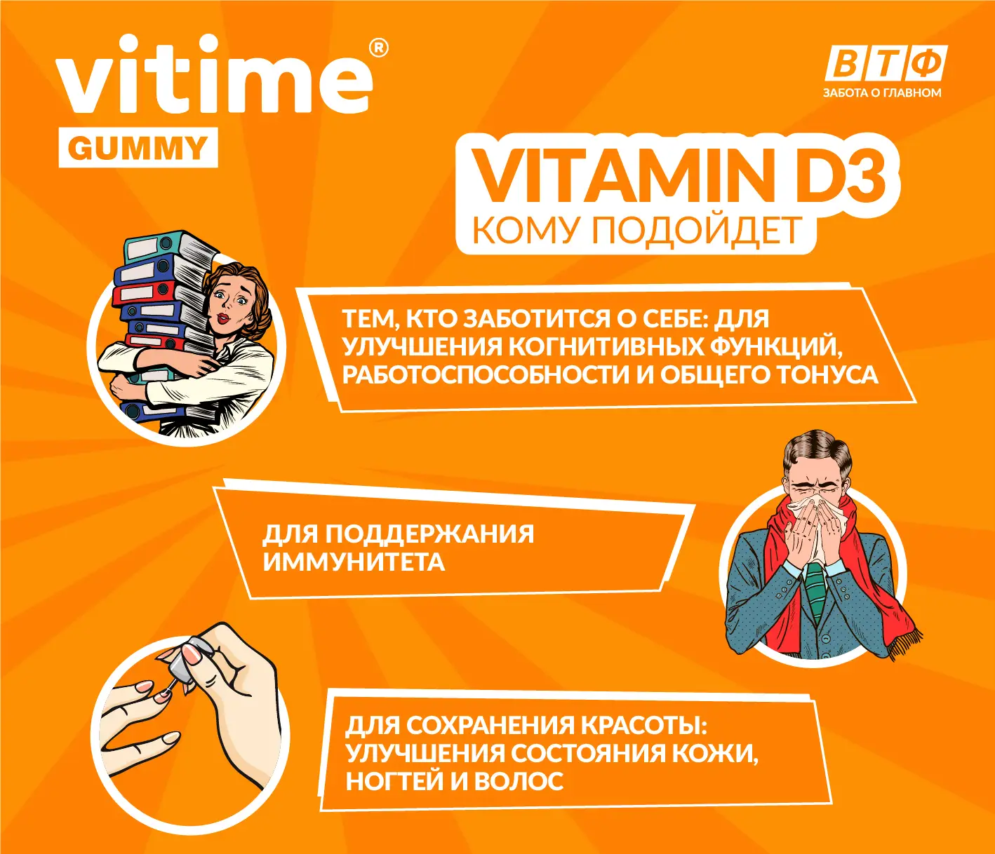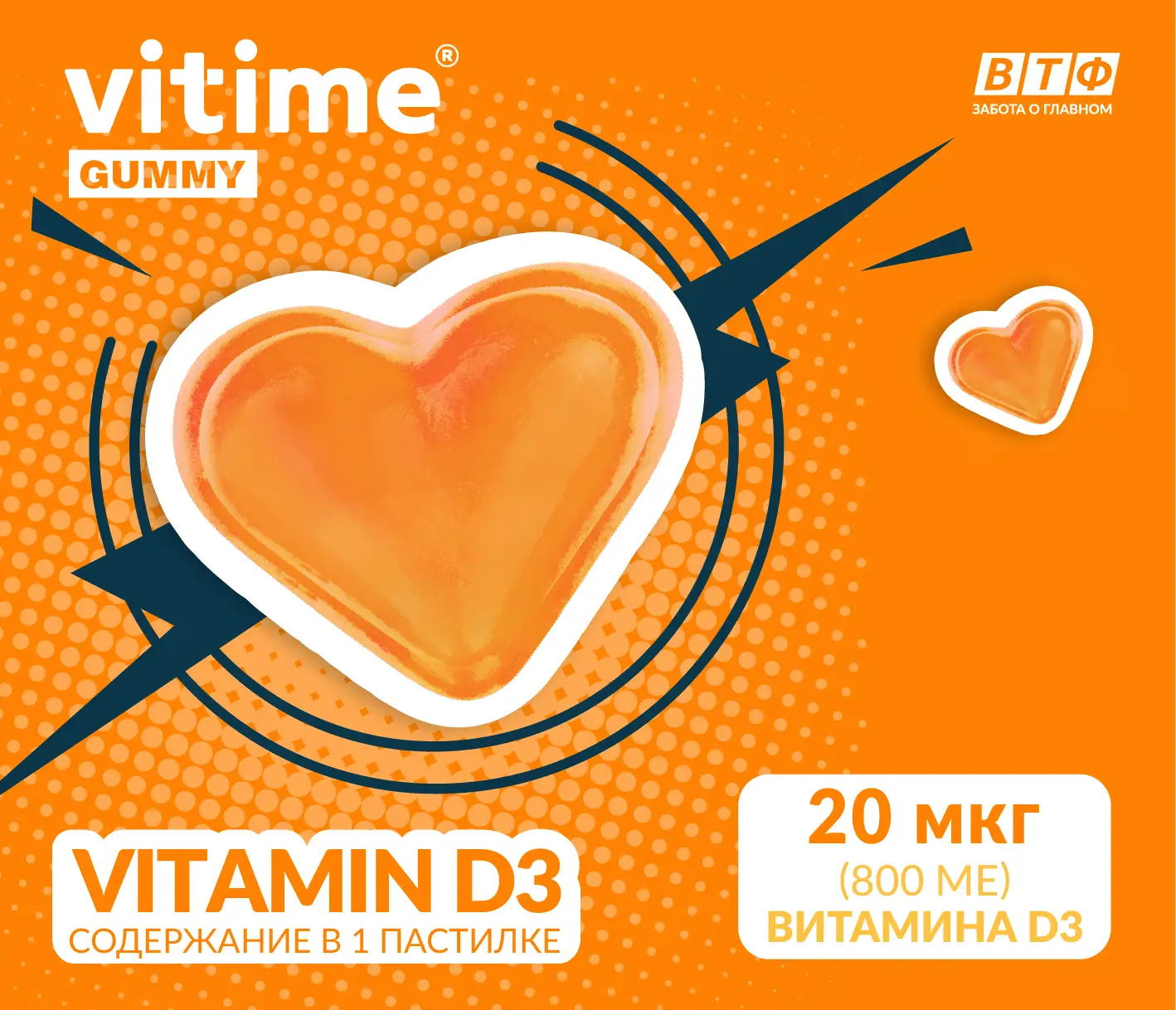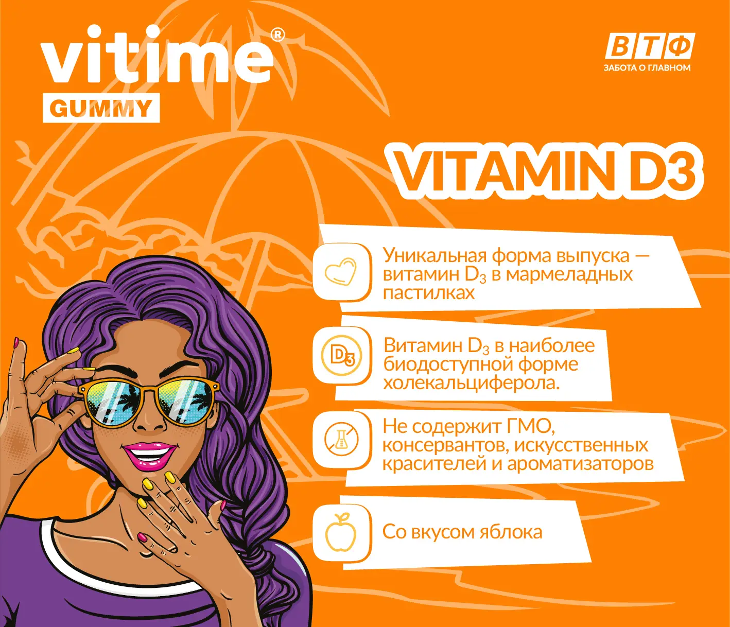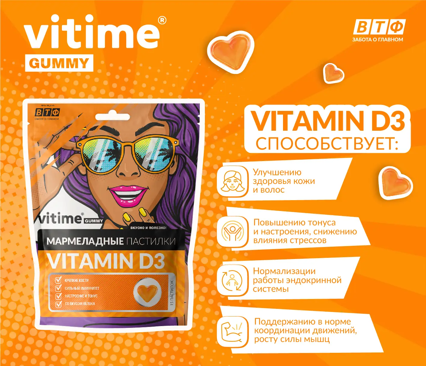 - Уникальная форма выпуска – витамин D3 в мармеладных пастилках.