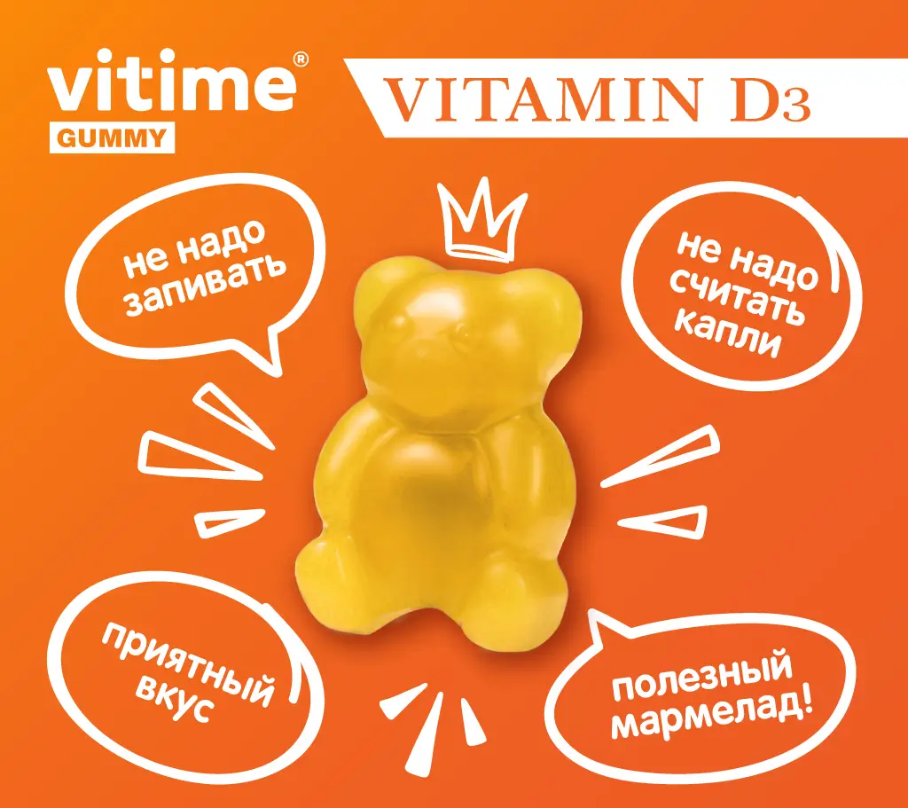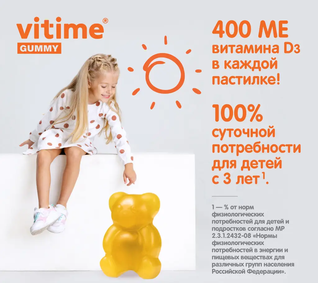 Ребенку назначили 1000 МЕ витамина Д. Сколько мармеладных мишек VITime ему нужно принимать?